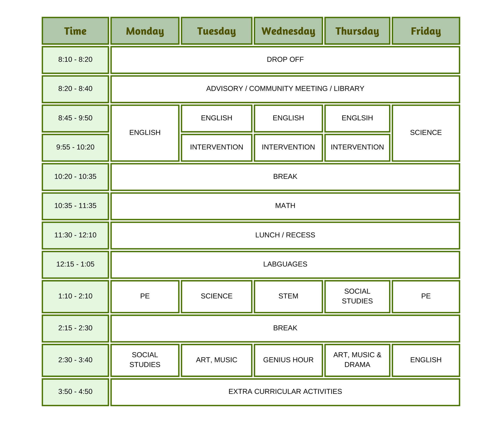 - World Languages: EAL, Bahasa Malaysia, Mandarin